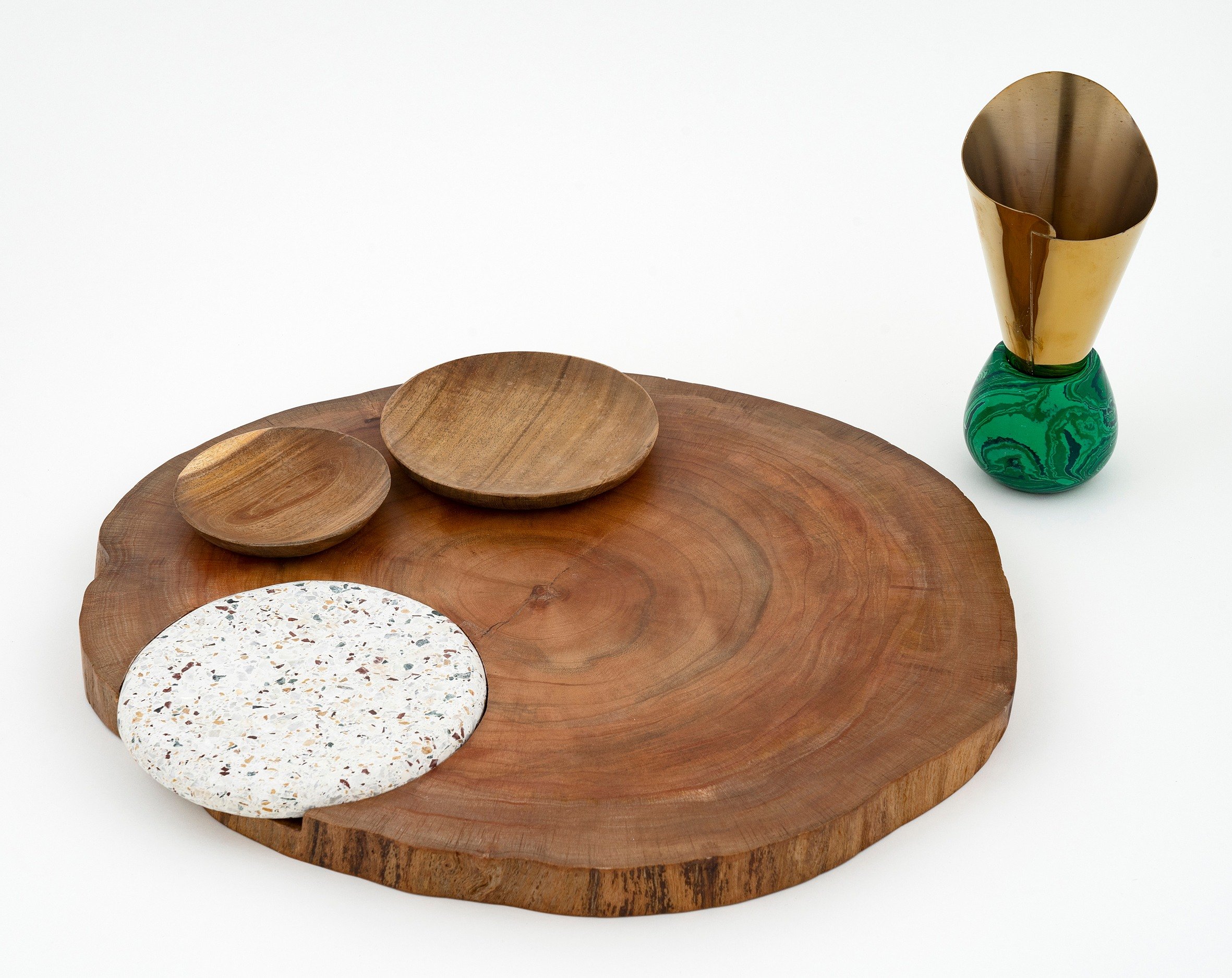 Askew Terrazzo Platter and Cone with Malachite Green Base